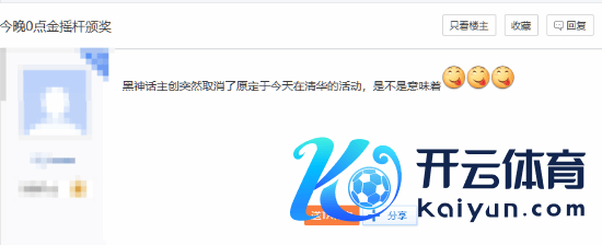 当天贴吧有网友发文示意,原定至今寰球午在清华大学大会堂举行的《黑听说》主创团队讲台须臾被取消,他推断:“今晚0点金摇杆受奖,讲座须臾被取消了,这是不是意味着......”