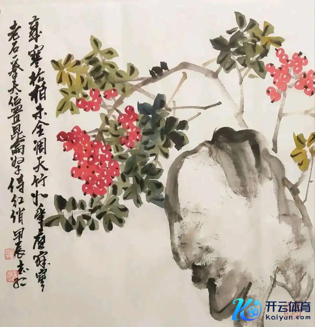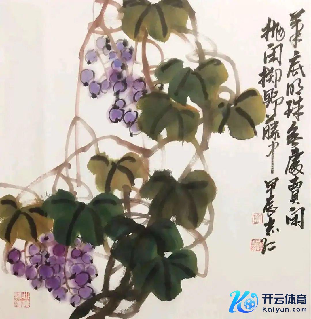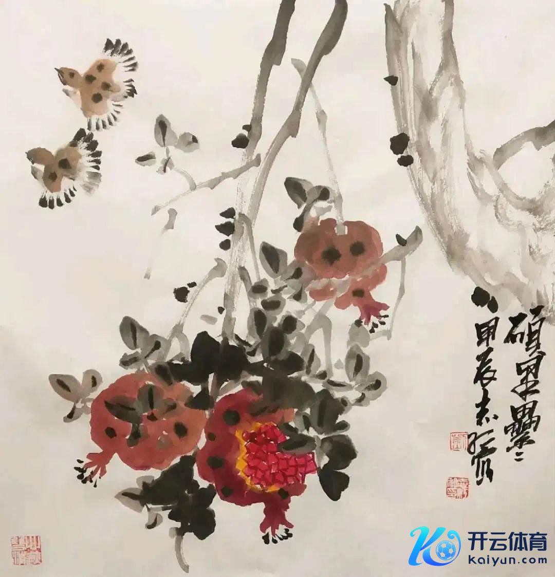 诚然合座颜色素雅,但在一些作品中,他也会期骗通晓的颜色对比来增强画面的弘扬力。在画石榴的作品中,石榴的红色与叶子的绿色酿成强烈的对比,红色的石榴如同火焰般在画面中高出,给东谈主以利害、喜庆的嗅觉,凸起了石榴的熟谙与有余。