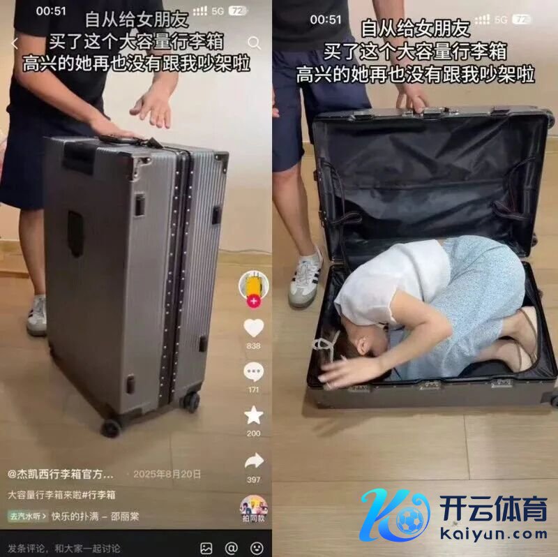 近日,一段某旅行箱品牌方在抖音平台上发布的宣传视频激发争议。视频中,别称女性模特瑟缩躺入一款大容量行李箱内,随后旅行箱拉链被东说念主拉团结配有案牍。“如何冲破冷战僵局?自从给女一又友买了这个大容量行李箱,中意的她再也莫得跟我吵架。”