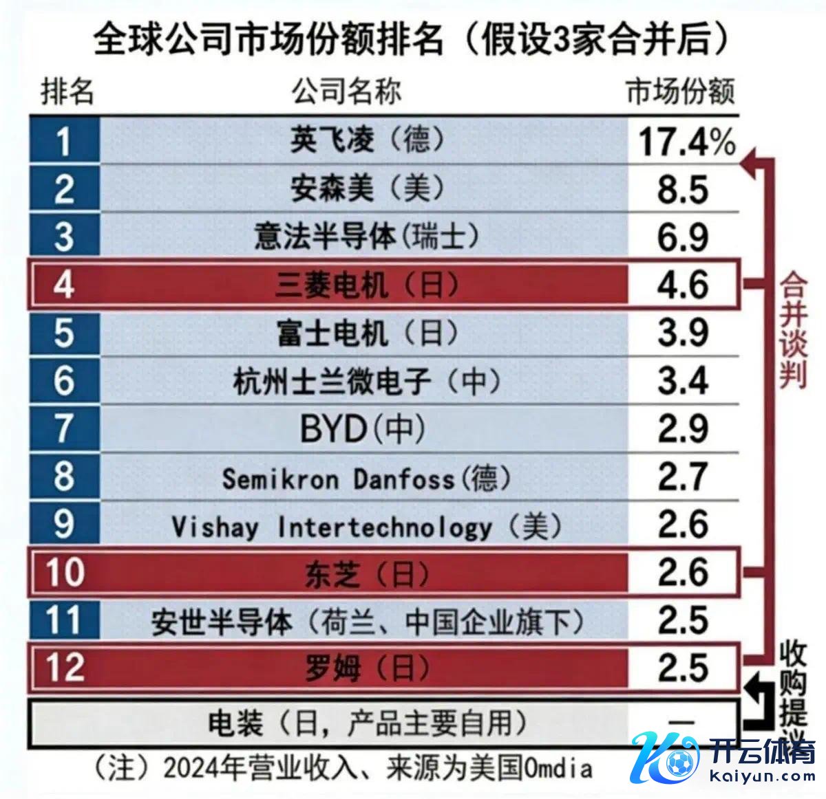 好意思国Omdia的数据炫耀,在2024年众人功率半导体市鸠合,德国英飞凌科技以17%的市集份额居首。三菱电机排在第4位,东芝和罗姆远离排在第10位和第12位。要是3家公司奏凯兼并,其市集份额的单纯揣摸将逾越好意思国安森好意思,跃居第2位。
