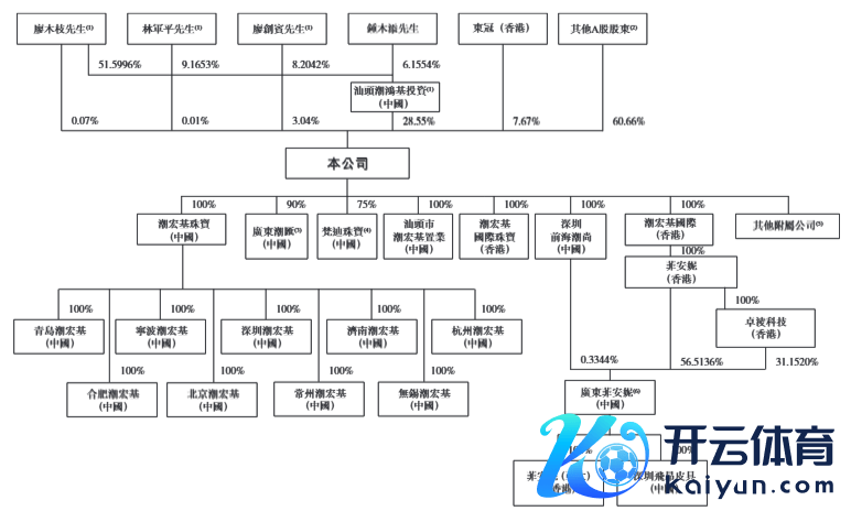 放肆2025年9月5日,潮宏基在香港上市前的股东架构中,廖木枝、林军平、廖创宾为一致行动东说念主士,所有捏股约31.67%,为单一最大股东集团。