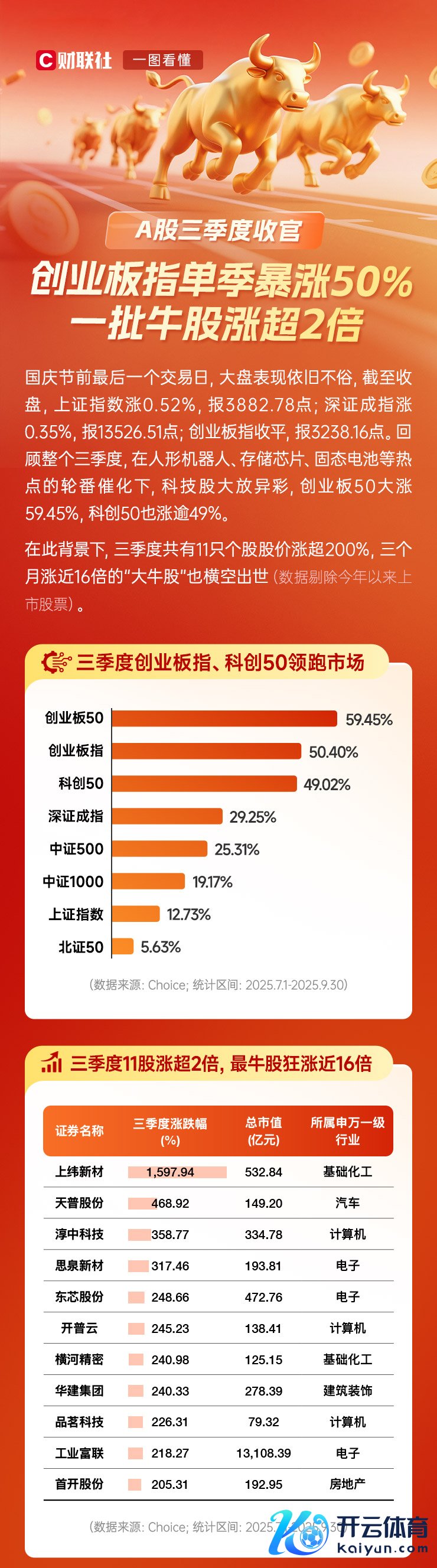 体育游戏app平台A股三季度收官:创业板指单季暴涨50% 一批牛股涨超2倍-开云(中国)Kaiyun·体育官方网站 登录入口